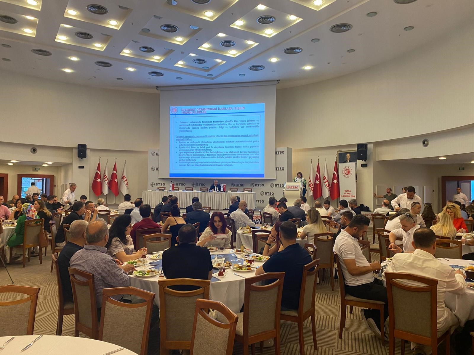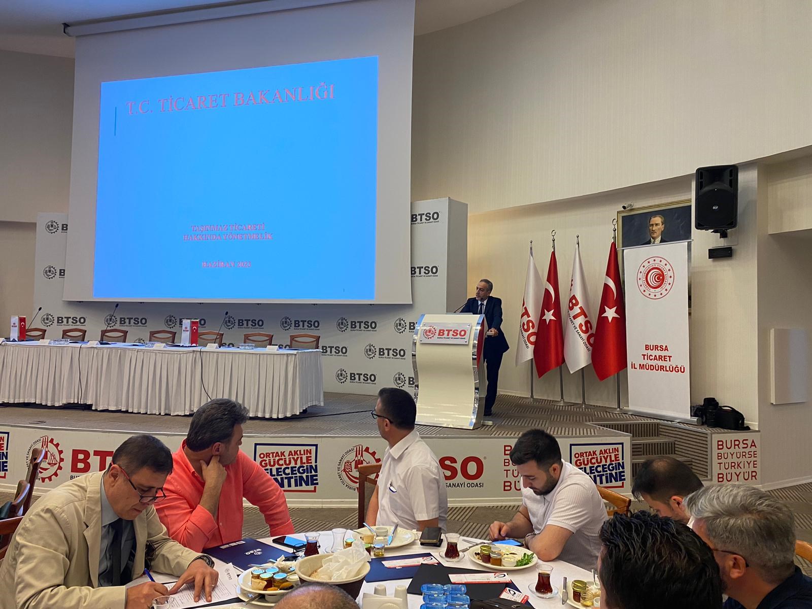 03 Temmuz 2023Bursa Ticaret ve Sanayi Odası'nın (BTSO) ev sahipliğinde düzenlenen Gayrimenkul meslek grubunu temsil eden 54. Meslek Komitesi'nin Genişletilmiş Sektörel Analiz Toplantısına Ticaret İl Müdürlüğü olarak katılım sağlayarak, genel değerlendirme esnasında sektör temsilcilerine İl Müdürlüğümüzce taşınmaz ticaret mevzuatı, yetki belgeleri, yetki belgelerinin iptali, denetimler ve mevcut durum hakkında bilgilendirme yapıldı.